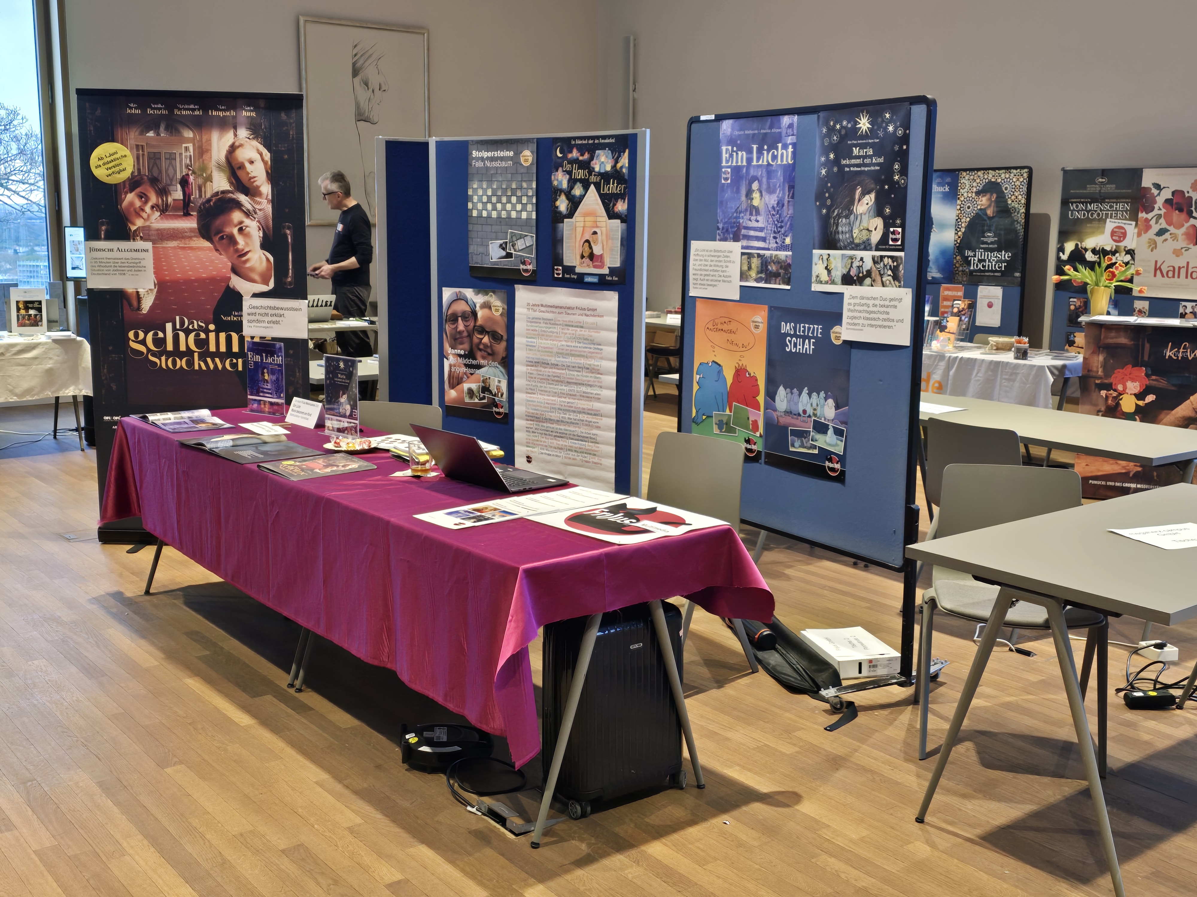 Bei der alljährlich stattfindenden Medienbörse, die in diesem Jahr in Siegburg stattfand, trafen sich Ende März Vertreterinnen und Vertreter von konfessionellen Medienzentralen zur Sichtung neuer Produktionen und zum Austausch untereinander, aber auch mit den anwesenden Vertretern der Medienanbieter. Auch die FriJus GmbH war mit einem Stand vertreten. Besonderes Interesse fanden die neuen Angebote von DAS GEHEIME STOCKWERK und die neuen Bilderbuchkinos.